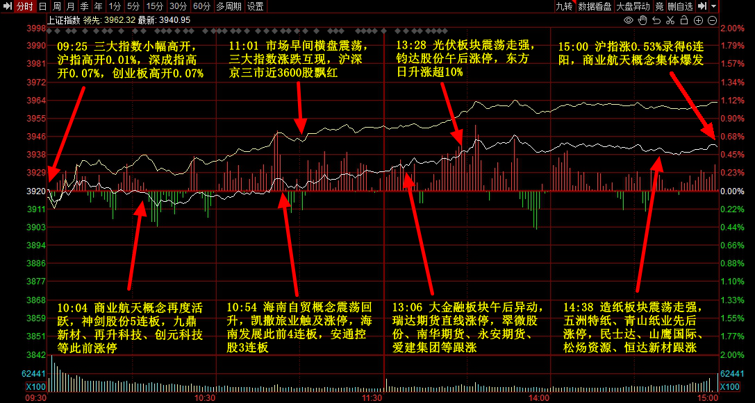 黄白线背离明显,今日题材股集体走强。 题材方面,商业航天板块大幅爆发反包,神剑股份5连板,再升科技(20CM)、大业股份、中超控股、博云新材、九丰能源、上海港湾、超捷 股份(20CM)、星网宇达、瑞华泰、国机精工、中国卫星、钧达股份、航天动力等先后涨停; 福建板块也迎来反弹,合兴包装3连板,欣贺股份、三木集团、瑞达期货、厦门国贸、东百集团等先后涨停; AI硬件板块携手局部走强,麦格米特、生益科技、天津普林涨停,嘉元科技、东材科技、德明利、英维克等集体走强; 1、行情 此外,存储、PTA、核聚变等有局部异动表现,有色钨、养殖、白酒等消费股跌幅居前。 截至收盘,沪指、深成指、创业板指分别收涨0.53%、0.88%、0.77%,市场超4100股上涨,1100余股下跌。 2、商业航天 昨日大跌的航天板块,今日开盘集体爆炸反弹。 神剑股份5连板,再升科技(20CM)、大业股份、中超控股、博云新材、九丰能源、上海港湾、超捷股份(20CM)、星网宇达、瑞华泰、国机 精工、中国卫星、钧达股份、航天动力等先后涨停; 信维通信、天银机电、飞沃科技、广联航空等涨超10%; 亚光科技、斯瑞新材、航天发展、西部材料、北斗星通、霍莱沃、 ...