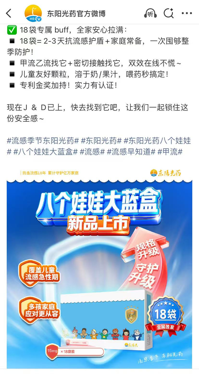 Core Viewpoint - Dongyangguang Pharmaceutical has launched an upgraded version of its flu medication, Oseltamivir Phosphate Granules (brand name: Kewai®), with a new packaging of 15mg×18 bags, exclusively available on JD Health, aiming to capture market share during the flu season [1][5]. Product Launch and Pricing - The new Kewai® product is an upgrade from previous versions, which included 15mg×10 bags, and is marketed as the "Big Blue Box" [5]. - The price of the new product was listed at 79 yuan on November 19 and increased to 89.6 yuan by November 20 [5]. - Compared to similar products like Ganliqing® and Shikewai®, which are priced at 96 yuan, Kewai® is positioned at a higher price point, approximately three times that of its competitors [7]. Market Position and Competition - Kewai® has historically been Dongyangguang's flagship product, holding over 70% market share in the domestic flu medication market [9][10]. - The company faces increased competition as new entrants like Ganliqing® and Shikewai® have recently received approval, potentially impacting Dongyangguang's market dominance [7][9]. - The pricing strategy of Kewai® aligns closely with original research products, indicating a high-price approach [7]. Financial Performance - Dongyangguang's revenue from Kewai® capsules has significantly declined post-national centralized procurement, with projected revenues of 5 billion yuan, 7 billion yuan, and 3 billion yuan from 2022 to 2024, compared to 16.6 billion yuan in 2019 [9]. - The company’s overall revenue is projected to be 37 billion yuan, 63 billion yuan, and 37 billion yuan from 2022 to 2024, reflecting fluctuations influenced by market conditions [9][11]. Regulatory and Market Dynamics - The recent national drug procurement results were unfavorable for Dongyangguang, as its Oseltamivir Phosphate Granules did not win a bid, despite high demand indicated by a reported volume of 1.11 million bags [12]. - The competitive landscape is shifting, with only two companies winning bids in the latest procurement, which may lead to increased pressure on Dongyangguang to adapt its sales strategy, particularly in e-commerce and outpatient markets [12].