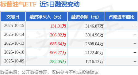 标普油气ETF:10月15日融资净买入131.91万元,连续3日累计净买入1024.48万元