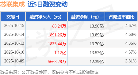 芯联集成:10月15日融资净买入88.24万元,连续3日累计净买入3812.93万元