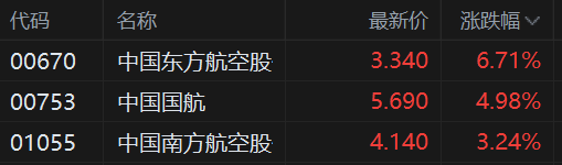 港股异动丨三大航空股拉升 东航涨近7%、国航涨5% 券商指行业景气有望持续改善