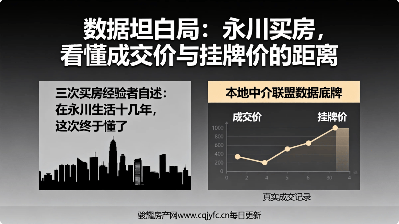 在永川买房,你需要靠"猜"吗? "新区洋房什么价?""老城区的步梯房现在到底值多少?""中介报的价,到底有多少水分?" 以前,你可能要打十几个电话,翻烂几个APP,最后心里还在打鼓。但最近,一场由本地28家中介自发掀起的"透明实验",正在彻底改写这个规则。他们做 了一个在同行看来"傻"到极致的决定:把每天的真实成交价,全部公开。 01 告别"雾里看花":每一笔成交都敢"见光" 如果你点开骏耀房产网的页面,可能会觉得有些"枯燥"。没有花里胡哨的"必抢好房",没有制造焦虑的"即将售罄"。只有像会计账簿一样的数字: "兴龙湖板块,金科中央公园城,118㎡,成交价82万;凤凰湖片区,高层精装,89㎡,成交价49.6万;老城步梯,131㎡,总价23.8万……" 02 真实的"定心丸":数据背后的永川楼市真相 当这层"窗户纸"被捅破,永川楼市的真实面貌反而让人踏实了。 打开这份"阳光台账",你会发现永川的市场比想象中健康得多。数据显示,永川呈现出清晰的"双轮驱动"格局:新区改善盘量价齐升,老区刚需房性价比为 王。 比如兴龙湖、凤凰湖等核心板块,凭借产业和商圈支撑,改善型洋房成交活跃,成为市场的"压舱石" 。而在老城区,十 ...