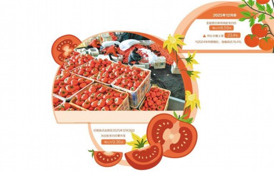 Core Viewpoint - The price of tomatoes has significantly increased, driven by multiple factors including reduced planting area, adverse weather conditions, and seasonal cost increases, leading to a tight supply situation in the market [5][6][9]. Price Trends - As of January 8, 2026, local prices for tomatoes in Shandong's Yanggu County reached 5 to 6.5 yuan per jin, nearly double compared to the previous year [2]. - The average wholesale price of tomatoes in December 2025 was 8.59 yuan per kilogram, marking a 23.4% increase month-on-month and a 76.4% increase year-on-year [4]. - The highest price recorded was 9.36 yuan per kilogram on December 26, 2025, with a slight decrease to 8.4 yuan by January 4, 2026 [4]. Supply Factors - The planting area for tomatoes has decreased due to low prices in previous years, which discouraged farmers from planting [5]. - Adverse weather conditions, including excessive rainfall and temperature drops, have severely impacted tomato yields and delayed market entry [6][7]. - The transition to winter production has increased costs due to reliance on high-cost greenhouse production and long-distance transportation [7]. Future Price Outlook - Experts predict that tomato prices may remain high in the short term, especially with the upcoming Spring Festival driving demand [8][9]. - The recovery of damaged production capacity will take time, and supply is expected to remain tight until new crops are harvested [9]. - A potential easing of supply constraints may occur with the upcoming harvests from regions like Hebei, which could help stabilize prices [9].