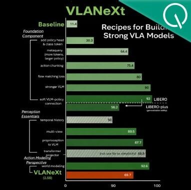 VLANeXt 团队 投稿 量子位 | 公众号 QbitAI VLA模型五花八门,到底哪些设计真正有用? MMLab@NTU联合中山大学的最新研究,给出了一份从入门到精通的终极"菜谱"—— VLANeXt 。 这项研究没有简单提出一个新模型了事,而是系统性地从 12个关键维度 ,深度剖析了VLA的设计空间。从基础组件到感知要素,再到动作 建模的额外视角,每一步都有扎实的实验支撑。 最终的产物VLANeXt,在标准基准LIBERO及泛化性测试LIBERO-plus上, 全面超越了包括7B参数模型在内的各类SOTA方法 。面对未见 过的光照、背景、相机位姿等扰动,其成功率较此前最佳方法大幅跃升了 10% 。 无论你是刚入局具身智能的小白,还是想进一步优化模型的老手,这份"菜谱"都能帮你找到答案。 背景:走出VLA的"原始汤" 随着大基础模型的崛起,视觉-语言-动作模型 (VLA) 展现出了极大的潜力,通过继承丰富的视觉理解和语言基础,为通用机器人策略学 习提供了可扩展的途径。然而,目前的VLA研究领域依然处于一种"原始汤 (primordial soup) "阶段—— 充满了各种天马行空的探索和 设计,但缺乏清晰 ...