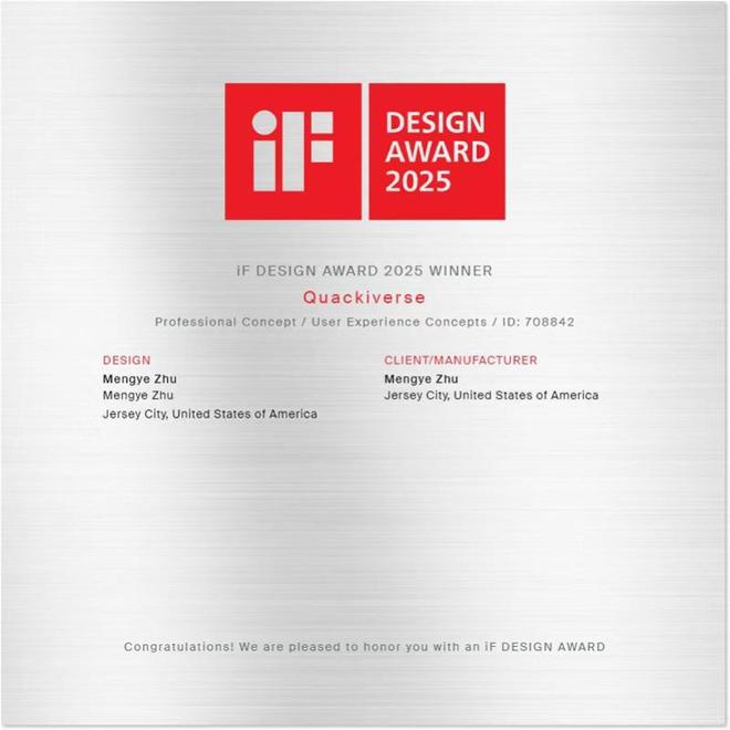 2025年被誉为设计创新与人本科技深度融合的一年。在这一年里,交互设计师朱梦也(Mengye Zhu) 凭借"以人为本"的人工智能交互设计理念脱颖而出,斩获德国 iF 设计奖、欧洲产品设计奖等多项国际 大奖。她的代表作"Quackiverse"将生成式AI与语音交互应用于儿童语言学习,打造个性化且富有情感温 度的学习体验,同时在健康科技与创意教育等领域探索AI交互的新可能。 朱梦也硕士毕业于康奈尔大学设计专业,立志通过设计提升社会的包容性与公平性。她的设计实践跨越 UI/UX、交互艺术和产品创新多个领域,但始终围绕一个核心——让尖端技术服务于人的真实需求。正 如她所强调的,优秀设计需要将创造力、技术与共情心融合在一起。 在她主导设计的代表作"Quackiverse"中,这一理念被完整地呈现。该平台以生成式AI与语音识别技术为 核心,为6至15岁儿童打造了一个沉浸式语言学习世界,让学习不再枯燥,而是一场充满探索与互动的 旅程。"Quackiverse"针对传统语言教育中"缺乏趣味性""难以坚持""家长陪伴不足"等痛点,构建了一个 AI驱动的动态学习系统。通过智能语音反馈、故事式任务与游戏化闯关机制,孩子可以在互 ...