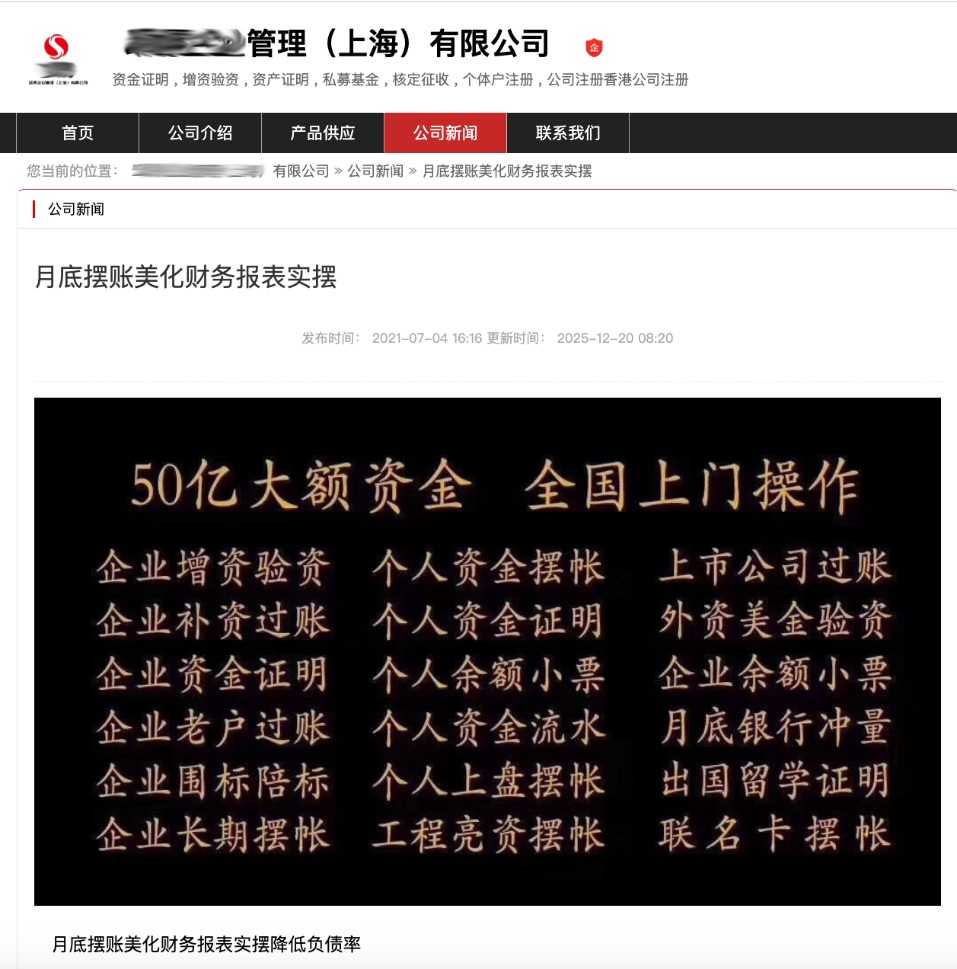 每经记者|王沐霖 每经编辑|吴永久 岁末年终,资本市场进入财报编制的关键阶段,一场围绕上市公司及拟IPO公司的"财报美化"地下生意正公然蔓延。 《每日经济新闻》记者(以下简称每经记者)注意到,近期在部分股票投资交流群、金融行业社群中,有不少"报表优化""摆账""亮资"等业务推广信息出 现;并且,在百度、知乎、小红书等平台上搜索"财报美化业务",亦会出现公然揽客的帖子。 财报如何"美化"?是否涉及违法违规?具体如何操作?美化后的财报能否通过审计?带着这些问题,每经记者以上市公司工作人员的身份暗访了几位服务提 供方。 据了解,"年底报表优化"业务的核心实质是资金中介方提供的短期资金拆借服务,具体操作路径是:由上市/拟上市公司预先制定明确的资金流转"路径 图",资金中介提供资金并指导资金在多个指定账户间完成无真实贸易背景的循环划转,通过这类账面资金空转操作,实现营收规模、经营性现金流等核心 财务指标的表面优化,此类业务的单笔拆借资金规模可至十亿元级别。 上海明伦律师事务所律师王智斌明确指出,资金中介明知企业用于财务造假仍提供资金,即便不参与账务处理,也构成虚假陈述的协助行为,涉嫌违反《证 券法》及刑法相关规定,可能 ...