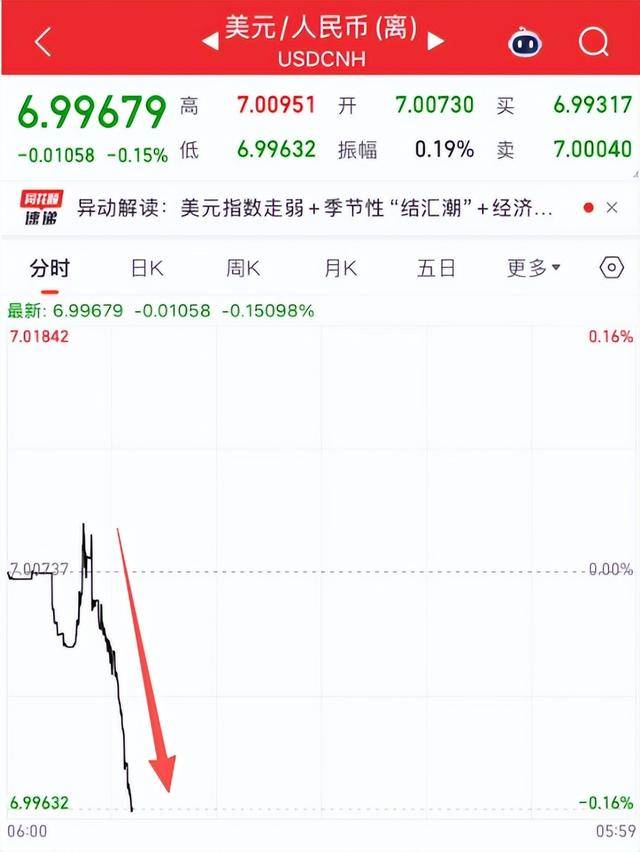 刚刚,市场爆出一声惊雷。 离岸人民币兑美元汇率,猛地一举冲破7.0大关!最高飙到了6.9968。 记住这个时刻:这是自2024年以来,人民币汇率第一次回到"6时代"。 上一次看到这个数字,还是在遥远的2023年5月。整整两年零七个月的等待,人民币终于扬眉吐气,杀 回来了! 这意味着什么?最直接的感受:你的钱,更值钱了。 简单算笔账:就在几个月前,你用100万人民币,大概只能换到13.46万美元。 但现在,同样是100万人民币,你可以换到14.29万美元! 里外里,多出来8322美元,按现在汇率换算,差不多是6万人民币! 如果你最近正打算送孩子去美国留学,或者计划全家来趟欧美游,现在去换汇,跟你半年前去换,感受 绝对是冰火两重天。晚换几个月,学费或旅费可能直接省出一台高档轿车。 真应了那句话:选择比努力重要。 timing(时机)就是一切。 1. 升值风暴,从哪刮起? 很多人懵了:人民币怎么突然间就强得"可怕"? 原因,得从内外两个拳头说起。 第一拳,打的是外部环境。根源,还是那个"漂亮国"。 美国经济最近有点"虚"。数据疲软,债务风险的红灯一闪一闪,美联储撑不住了,从9月份开始,扭头 进入了降息通道。12月, ...