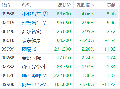 港股低开,恒生科技跌超1%,小鹏汽车跌超4%,紫金矿业涨超3%