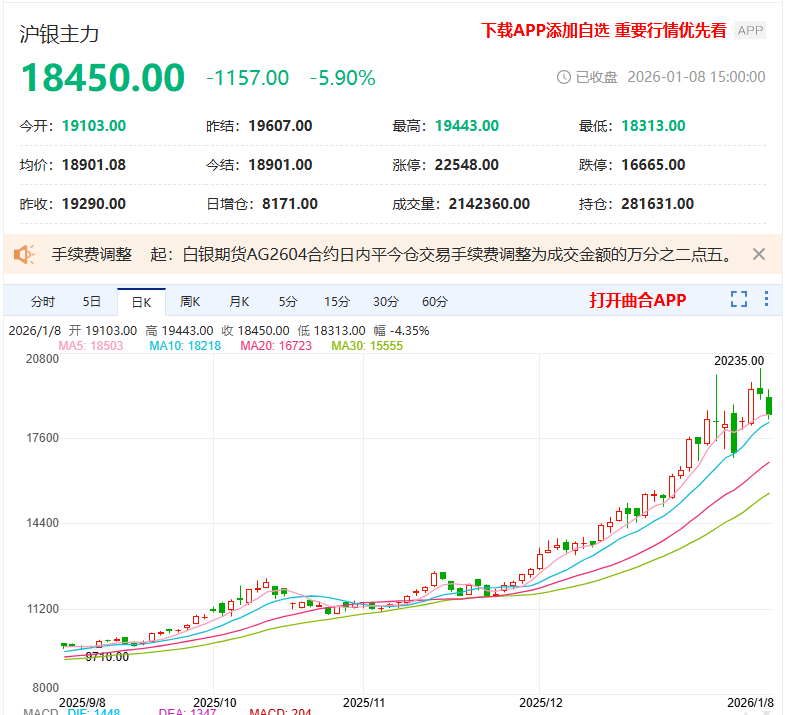 图片来源:曲合APP 今日白银大跌不是因为基本面变差,核心是"被动调仓+资金平仓+流动性差"凑到了一起。关键推手是彭博商品 指数年度调整,之前白银涨太多导致权重超标,现在要从7.11%降到3.94%,被动基金得在一周内集中卖白银, 预计卖盘有34-50亿美元,而白银市场盘子小,扛不住这种集中抛售。再加上近期交易所上调了白银期货交易保 证金,高杠杆投资者没钱追加就只能被迫平仓,又多了一波卖盘。 另外,元旦后市场流动性本身就紧,加上机构借调仓窗口止盈、期货换月,还有程序化交易跟风做空,形成"越 跌越卖"的恶性循环,直接放大了跌幅。这种情况是短期技术性冲击,等1月14日指数调整结束,抛压退了,价 格大概率会回归正常。短期交易要注意10-12日可能是抛压高峰,中长期不用慌,看看后续卖盘是不是变少、市 场有没有人接盘就行。 。 白银方面,多头资金通过 ETF 和实物交割方式大量增持驱动价格偏强运行,全球库存紧张的情况或未真正缓 解,但价格高位运行可能抑制工业领域的需求。随着 CME 等交易所提保短期资金情绪驱动价格"非理性"的上涨 走势有望终结带来降波,后续关注还需全球大宗商品指数调仓可能带来被动减持的回调风险,在高波 ...