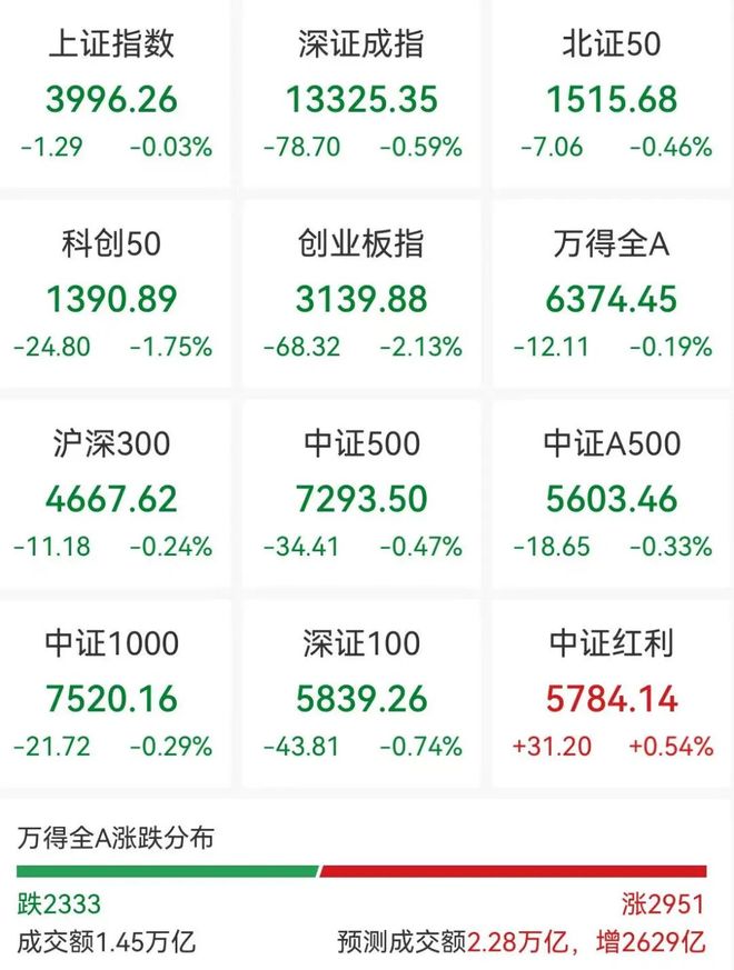 此外,11月7日,财政部发布2025年上半年中国财政政策执行情况报告,将继续实施好提振消费专项行动,对重点领域的个人消费贷款和相关 行业经营主体贷款给予财政贴息,激发养老、托育等服务消费潜力。 记者 | 金珊 孙永乐 11月10日,A股市场早盘震荡下跌, 截至收盘,沪指跌0.03%,深成指跌0.59%,创业板指跌2.13%。市场 半日成交额1.45万亿,全市场近 3000只个股上涨。 热点板块方面,消费、化工等涨幅居前,CPO、人形机器人等跌幅居前。 编辑 | 曾静娇 | 上证指数 | 深证成指 | 北证50 | | --- | --- | --- | | 3996.26 | 13325.35 | 1515.68 | | -1.29 -0.03% -78.70 -0.59% -7.06 -0.46% | | | | 科创50 | 创业板指 | 万得全A | | 1390.89 | 3139.88 | 6374.45 | | -24.80 -1.75% -68.32 -2.13% -12.11 -0.19% | | | | 沪深300 | 中证500 | 中证A500 | | 4667.62 | 7293.50 ...