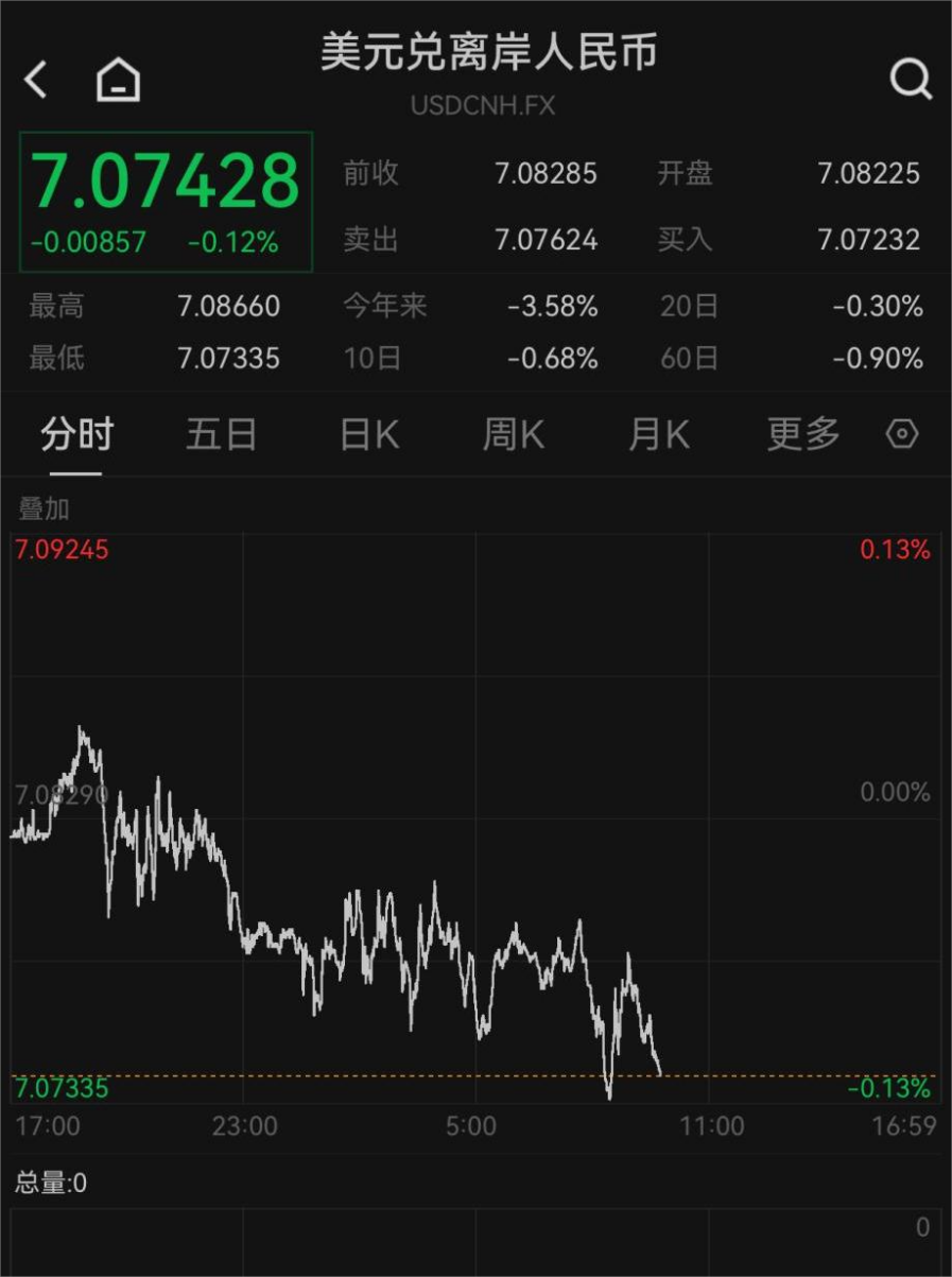 人民币破7在望!在岸价升至7.0908创一年来新高