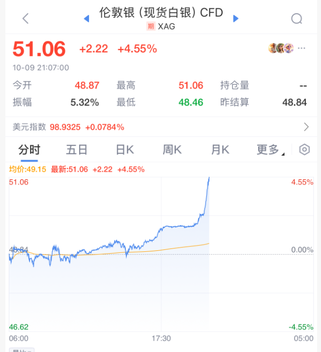 刚刚!白银 也疯了!历史首次突破50美元/盎司