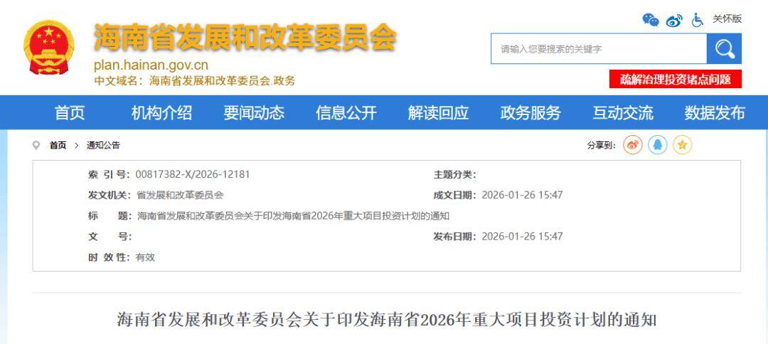 总投资超7000亿元!海南公布2026年重大项目投资计划!