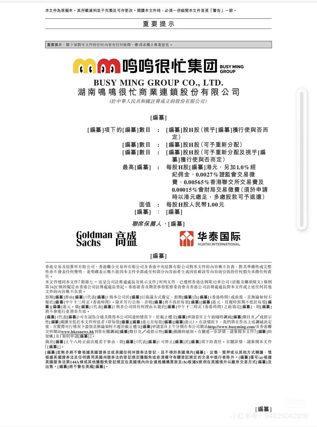 扬子晚报网1月9日讯(记者范晓林薄云峰实习生潘伊笑)湖南鸣鸣很忙商业连锁股份有限公司(下称"鸣鸣很忙")已通过港交所上市聆讯,一旦上市,即将成 为港股"量贩零食第一股"。 | 編纂]項下的[編纂]數目 | | : [編纂]股H股(視乎[編纂]獲行使與否而 | | --- | --- | --- | | 定) | | | | [編纂]數目 | .. | [編纂]股H股(可予重新分配) | | [編纂]數目 | : | [編纂]股H股(可予重新分配及視乎[編 | | | | 纂]獲行使與否而定) | | 最高[編纂] : | | 每股H股[編纂]港元,另加1.0%經 | | | | 紀伊金、0.0027%證監會交易徵 | | | | 費、0.00565%香港聯交所交易費及 | | | | 0.00015%會財局交易徵費(須於申請 | | | | 時以港元繳足,多繳股款可予退還) | | 面值 | : | 每股H股人民幣1.00元 | | [編纂] | . . | [編纂] | 鸣鸣很忙招股书。 鸣鸣很忙本次IPO高盛、华泰国际为其联席保荐人;安永为其审计师。据同花顺(300033)资讯显示,鸣鸣很忙由成立于201 ...