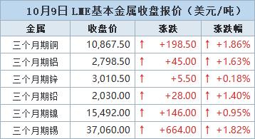 金属普涨 期铜触及11000美元 投资者押注铜供应短缺【10月9日LME收盘】