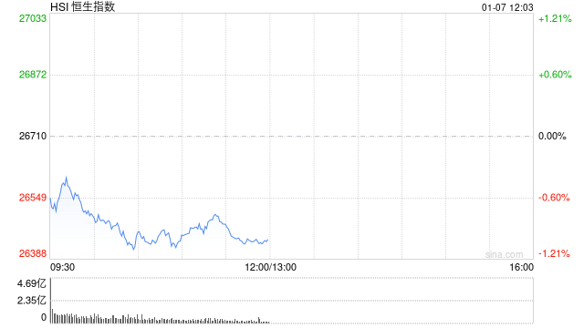 | 代码 | 名称 | | 最新价 | 涨跌幅 √ | | --- | --- | --- | --- | --- | | 02245 | 力勤资源 | 0 | 25.980 | 8.34% | | 03993 | 吉田短田永 | | 21.940 | 5.68% | | 00486 | 俄铝 | | 5.160 | 5.52% | | 06680 | 金力永磁 | | 20.520 | 5.50% | | 01378 | 中国宏桥 | | 36.600 | 3.80% | | 02600 | 中国铝业 | | 13.680 | 3.09% | | 01258 | 中国有色矿业 | | 15.590 | 1.63% | | 02899 | 三十四步新 | | 38.840 | 1.52% | 1月7日消息,港股三大指数震荡走弱。截至午间收盘,恒生指数跌1.01%,报26439.68点,恒生科技指 数跌1.65%,国企指数跌1.11%。盘面上,科网股普跌,阿里巴巴跌超4%,哔哩哔哩跌超3%,快手、网 易、美团跌超2%;生物医药股延续涨势,康方生物涨超6%;有色金属板块走强,洛阳钼业涨超5%;石 油股走弱,中石油 ...