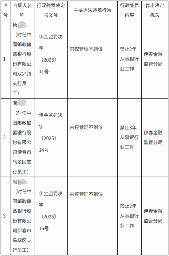 一则罚单,竟牵出两桩刑事案件,不仅揭露了个别信贷人员利用职务便利牟取私利的嚣张行 径,更撕开了邮储银行个别支行在内部管理上的漏洞。 在第一桩挪用资金案中,涉事邮储银行信贷员利用职务便利,先后挪用资金100余万元归个 人使用及借贷给他人。直至资金缺口无法填补,该信贷员选择逃匿,留下90余万元的资金窟 窿。 第二桩案件暴露出的问题更为复杂。涉事信贷员不仅利用职务便利挪用资金归个人使用,还 伪造全套虚假贷款资料诈骗银行贷款。更值得警惕的是,该案牵涉出两名同支行员工,其中 一人更是支行"一把手",暴露出部分银行"岗位制衡形同虚设、审批流程沦为形式"的深层问 题。 劳务派遣信贷员的"资金挪用术": 暴露支行内部管理乱象 日前,国家金融监督管理总局伊春监管分局的一张罚单,将邮储银行三名员工推至台前—— 三人皆因"内控管理不到位"受罚。其中,杨某某为原邮储银行双兴镇支行员工,被禁业2 年;闫某某和冯某某为原邮储银行伊春市乌翠区支行员工,分别被禁业3年和2年。 | 序 | 当事人名 | 行政处罚决定 | 主要违法违规行为 | 行政处罚 | 作出决定 | | --- | --- | --- | --- | --- | --- ...