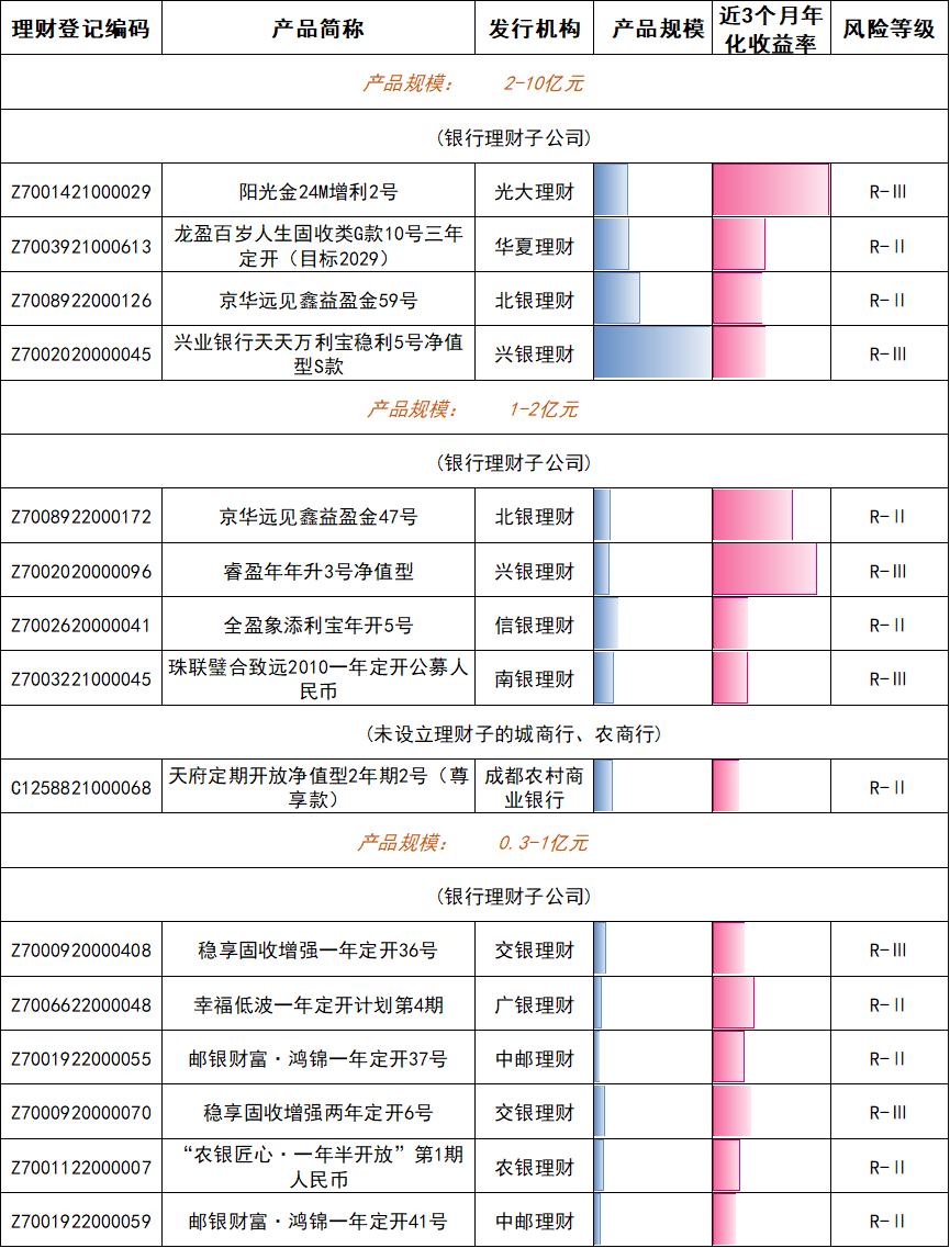 银行理财产品榜单