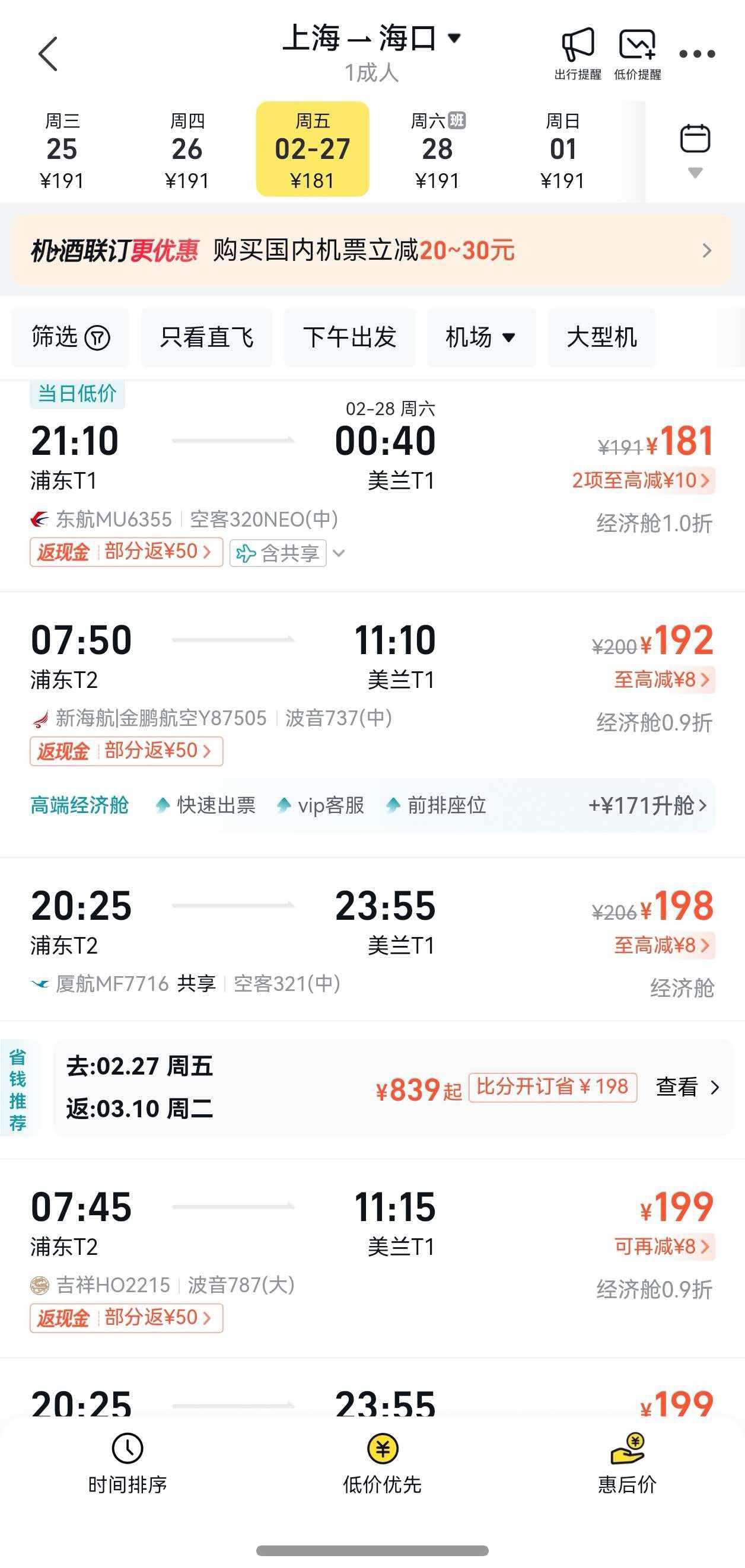 春节后机票大跳水 上海飞海口三亚都不到200元了
