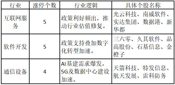 每经记者|闫峰峰 每经编辑|何建川 各位投资者,大家好。 涨跌停板数据,不仅是反映板块和个股强弱的重要指标,更是体现市场情绪与资金流向的重要参考依 据。那么,今日的涨停个股有哪些特点呢?哪些涨停股又值得重点关注?欢迎大家关注微信公众号"道 达号",其"道达涨停复盘"栏目为大家解读。 今日,上证指数上涨0.05%,深证成指上涨0.37%。沪深A股涨跌幅中位数为上涨1.35%。 涨停板方面,今日军工板块涨停股数量最多,其中,江龙船艇20%涨停创下历史新高,另有4只涨停的 军工股创出近一年新高。创出历史新高的江龙船艇属于船舶制造行业;同属于船舶制造行业的中船防 务,今日也是10cm涨停,创出近四年新高,也涉及军工概念。 从行业特征来看,今日涨停板个股中,互联网服务、软件开发、通信设备行业的个股最多。 船舶制造板块近期表现相对强势。同花顺船舶制造指数在大市总体缩量的背景下,近期持续放量,今日 更是大涨4.18%。 消息面上,克拉克森研究数据显示,中国造船业新接订单数量大幅领先。申万宏源近日发布研报称,新 造船价格指数与二手船价格指数走势背离,二手船价向上超越新造船价格,航运造船联动超级周期行情 有望启动。 对于军工板 ...
