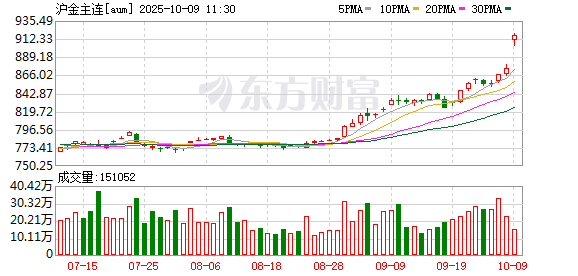 多重利好支撑贵金属涨势如虹 节后沪金跳空高开刷新上市新高