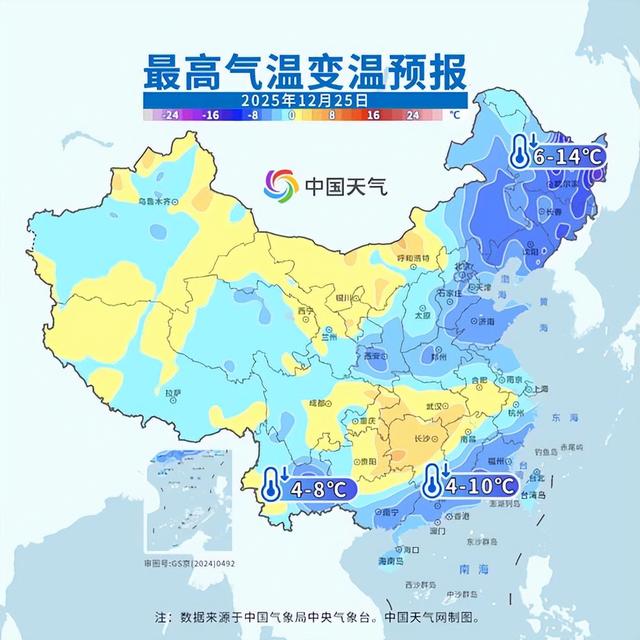 本文转自【央视新闻客户端】; 近期我国气温多起伏,目前新一股冷空气正在影响我国,局地降温将超14℃!降温过后会有多冷?还有 大范围雨雪吗?之后还有冷空气吗? 这次降温有多猛? 预计今天夜间至25日,冷空气南下将影响我国大部地区,其中北方大部将降温4~8℃,东北地区降温幅 度可以达到8~12℃、局地14℃以上;南方大部则会降温4~6℃、江南等地降温幅度可达6~10℃。 降温过后会有多冷? 未来三天,中东部多地气温将创下半年新低,此次过程气温低点大多出现在25日至26日。 届时,最高气温0℃线位于山西北部、河北北部,东北地区大部最高气温将降至-10℃以下,吉林、黑龙 江不足-15℃;10℃线位于长江中下游沿线,江苏、浙江、上海、安徽一带最高气温普遍不足10℃。 这次降温会影响华南吗? 有大范围雨雪吗? 今天,降水覆盖黑龙江、吉林、辽宁、山东到湖南、贵州、广西中西部大部地区,东北以降雪为主,其 余地区为降雨。 今天夜间开始,北方的降雪将会明显减弱,而南方大范围阴雨天气仍将持续。 省会、首府中,福州、南宁25日最高气温将创今年下半年来新低,降至15℃或以下;广州25日最高气温 也将降至20℃上下。 之后还有冷空气吗? ...