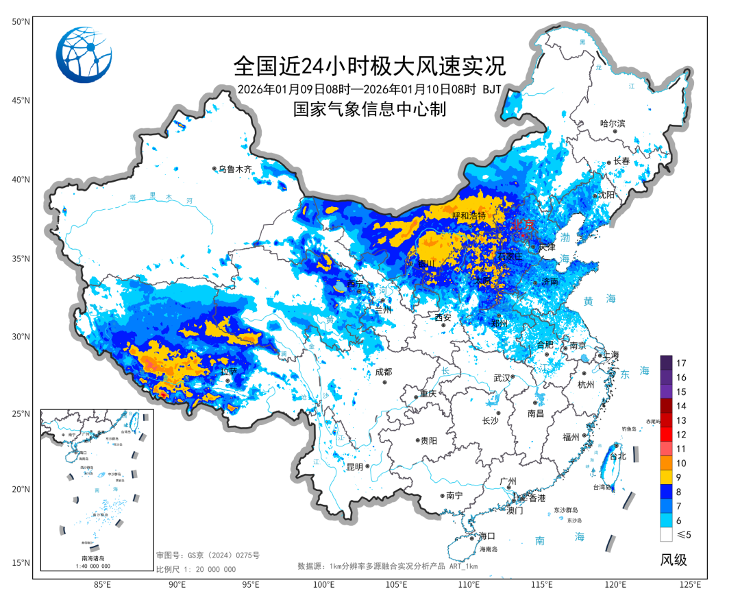 本文转自【中国气象局】; 昨日(1月9日),内蒙古中西部、华北大部及宁夏北部、陕西北部、辽东半岛、山东半岛等地出现7至9级阵风、局地风力超过10级。 #北京大风#等相关话题也登上热搜。 中央气象台10日6时继续发布大风蓝色预警,预计甘肃北部、内蒙古中东部、陕西北部、华北、山东、辽东半岛等地部分地区有5至6级大风、阵风7至9 级。 象象提醒,北方部分地区风力较大,大家外出要远离广告牌、临时搭建物等危险区域,谨防高空坠物。此外,东北地区中东部降温剧烈,降雪较强,要做 好保暖御寒措施,警惕道路积雪、路面结冰等对交通出行的不利影响,注意出行安全。 据北京市气象台,截至10日8时,北京全市极大风速最大值在门头沟区高山玫瑰园(高山站)39.9米/秒(13级);平原地区及城区极大风速最大值在海淀 区车道沟25.3米/秒(10级)。目前北京风力已有所减弱。 对于北方地区整体来说,今天风力都会有所减弱,但部分地区风力仍较大。 另外,较强冷空气将继续影响我国,中东部地区气温继续走低。 其中今天,内蒙古中东部、华北东部、东北地区东部、黄淮大部、江淮北部等地气温将下降4℃至8℃、局地10℃以上。 降水方面,今天东北地区仍有雨雪天气。 ...