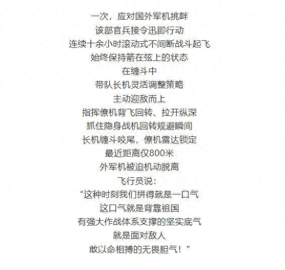 【文/观察者网专栏作者 晨枫】 近日,《解放军报》发布了一篇题为"新春走军营丨胜利拼的就是一口气!"的报道,在这篇看似"平平 无奇"的报道中,有这么一段话引起了大家的注意: 光看这段话,并没有详细说明事件发生地点和涉及机型,但根据军迷和外媒的猜测,一般估计在东海, 涉及的机型正是歼-16和F-35。 这也是几个月前西部战区一架歼-16在东南沿海轮训中,在滚筒机动中倒飞骑坐在一架外军F-35上方, 用雷达同时锁定并驱离两架F-35之后,又一次公开的有关报道。 歼-16是从歼-11双座型发展过来的空地兼优的重型战斗机。普遍认为歼-16的主要作用是"炸弹卡车",但 现在看来空地兼优不是徒有虚名,歼-16的空战性能也十分了得,在与外军最先进战斗机的斗智斗勇中 大显神威。 歼-16装备了先进的有源电扫(AESA)雷达,有完备的数据链和红外光电系统。歼-16也不是"一个人在 战斗",近年来,中国的陆基远程预警雷达普遍配备了很强的反隐身能力,预警机的大量装备更是从根 本上改变了空情感知。 尽管如此,在空战中,800米是很近的距离。估计当时的现场情况里,中国的防空体系从很远就锁定了 F-35的动向,然后歼-16悄悄贴上去。而 ...