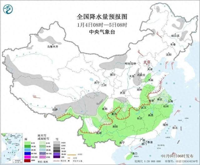 今明天(1月3日至4日),西北地区东部、西南地区的雨雪仍将在线,长江中下游一带降水也会短暂增多,以小雨雪或雨夹雪为主。 目前处于冷空气影响 间歇期,中东部各地气温陆续回升,不过明起将有三股冷空气接连到场,气温又会出现波动。 雨雪频扰西北西南等地 长江中下游降水短暂增多 昨天,中东部大部地区雨雪稀少,晴天上线,雨雪主要集中在西北地区东部、西南等地。监测显示,昨天8时至今天6时,青海南部、甘肃中东部、陕西中 南部及四川北部、重庆东南部、贵州北部等地部分地区出现小雪或雨夹雪天气;四川盆地、重庆、湖南西部和南部、广西西部、台湾岛北部和东部等地部 分地区出现小到中雨,台湾岛局地大雨或暴雨。 今明天,降水范围将向河南以及长江中下游地区扩展,普遍以小雨雪或雨夹雪为主。此轮降水强度较弱,持续时间也不长,后天起中东部再度回归雨雪稀 少、晴朗干燥的天气格局。 具体来看,中央气象台预计,今天,西北地区东南部、河南西部、湖北西部、川西高原北部、贵州西北部、青海南部、西藏南部和东部等地部分地区有小 到中雪或雨夹雪;四川盆地、湖北大部、湖南北部、贵州中东部、云南大部等地部分地区有小雨,其中,云南南部等地部分地区有中雨。 三股冷空气将接连 ...