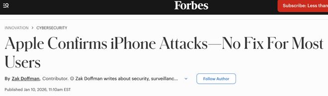外媒称,这一决策源于苹果对漏洞利用链的深度评估。据该公司安全工程团队披露,攻击者利用的两个 零日漏洞涉及WebKit浏览器引擎与iMessage处理核心,具备远程代码执行与持久化驻留能力,可被用于 部署高度隐蔽的商业间谍软件(如NSO Group风格工具)。苹果已于假期前紧急发布iOS 26.2更新完成 修复,并同步向开发者推送安全公告。 来源:环球网 【环球网科技综合报道】1月11日消息,据forbes报道称,苹果公司近日确认,其最新发现的高危零日漏 洞已被商业间谍软件利用,成功入侵多台iPhone设备。与以往不同,此次修复采取了前所未有的技术策 略:苹果明确限定,仅运行iOS 26操作系统的设备可获得相关安全补丁;已停止支持iOS 18的设备,即 便符合硬件兼容条件,也无法通过旧系统获取该修复——除非设备本身不满足iOS 26安装要求。 然而,现实挑战在于用户升级滞后。多项独立统计数据显示,iOS 26的普及率远低于历史水平。有报告 指出,截至2026年1月初,仅有约19%的活跃iPhone设备运行iOS 26。部分用户对"Liquid Glass"屏幕材质 与新UI动效存在适应性抵触,还有用户对iOS ...