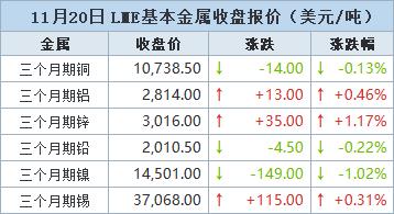 金属涨跌互现 期铜下跌,受累于需求担忧和美元强劲 【11月20日LME收盘】