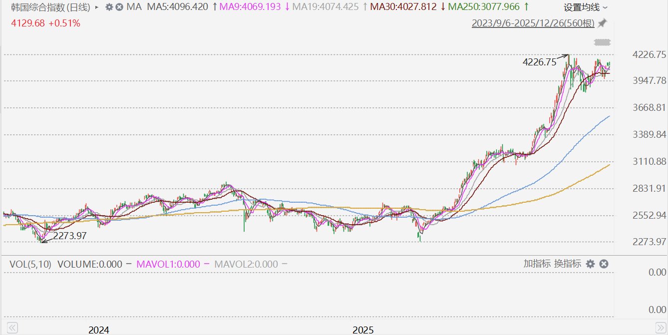 格隆汇12月26日|韩国综合指数收盘上涨21.06点,涨幅0.51%,报4129.68点。 ...