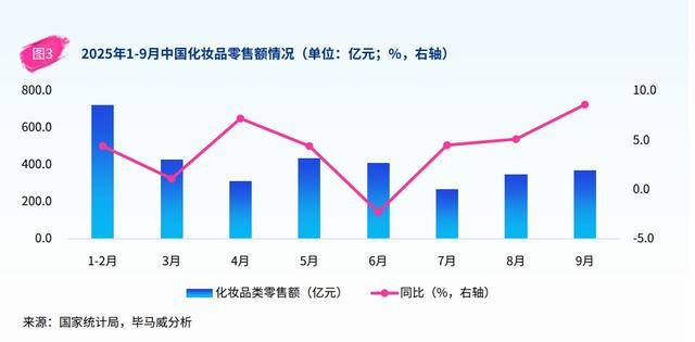 毕马威报告:2025年前三季度中国美妆零售额达3288亿元