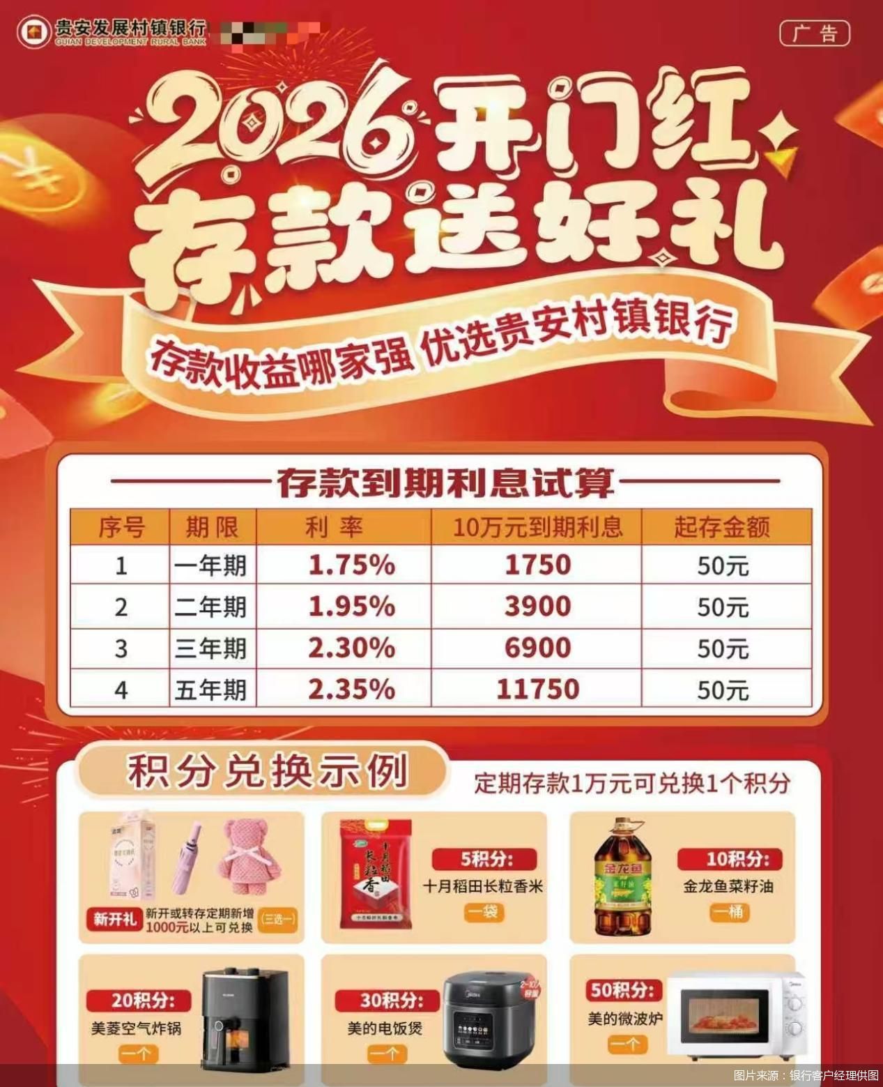 在存款利率持续探底、不同银行利差不断缩小的行业背景下,曾风靡一时的"存款特种兵"声量减小。不过,北京商报记者注意到,仍有部分储户未放弃对高 息的追求,将目光投向了区域中小银行,在贵州省,部分村镇银行在"开门红"活动中推出定期存款产品,三年期利率达2.3%、五年期2.35%,起存金额仅50 元。以10万元存入五年期测算,到期利息可达11750元,与国有银行五年期存款利率相比,多赚超1个百分点利息,吸引了不少储户的目光。分析人士建议, 跨省存款需权衡交通成本与综合收益,同时关注异地服务、提前支取、业务纠纷等后续便利性与安全性;储户应坚守存款保险保障,合理分散资金、兼顾流 动性,不能盲目追求短期高息而忽视潜在风险。 高利率唤醒沉睡"存款特种兵" 当下,银行业存款利率已全面进入"1时代",国有大行五年期整存整取定期存款挂牌利率均为1.3%。曾在两年前风靡全国、跨省跨城追逐高息的"存款特种 兵"们,因利差收窄至不足以覆盖交通成本,一度淡出公众视野。 为核实相关情况,北京商报记者以储户身份进行了咨询,贵安新区发展村镇银行一位客户经理发来该行2026年"开门红"存款送好礼活动详情。从利率表现来 看,该行定期存款利率起存金额 ...