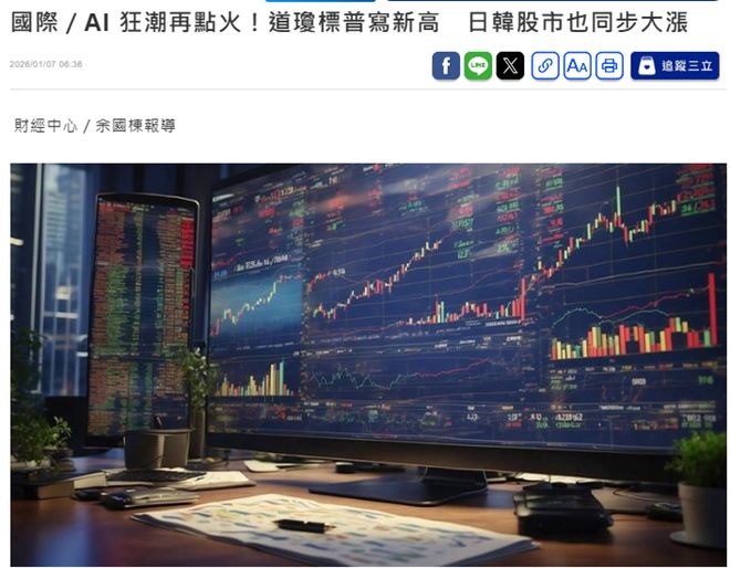 来源:环球网 报道还提到,AI与高效能运算相关类股,仍是推升指数的关键动能。美光股价大涨逾 10%,创下波段 新高,显示 AI 晶片需求外溢效应正快速扩散至记忆体与储存领域,SanDisk、威腾电子等相关个股同步 走高,成为盘面资金追逐焦点。整体而言,美股资金结构仍呈现"AI 主线不变、个股高档轮动"的特 征。 但报道也提到,美股期货盘在亚洲时段开盘后维持高档震荡,短线多头气氛尚未退烧,但指数位阶已 高,市场对消息面的敏感度明显提高。分析人士认为,在 AI 长线趋势未变的前提下,短线走势仍可能 随经济数据与利率预期震荡加剧,投资人操作上需留意高档波动风险,避免过度追价。 【环球网财经综合报道】北京时间1月7日凌晨,美国三大股指全线收涨,道指涨0.99%报49462.08点, 标普500指数涨0.62%报6944.82点,纳指涨0.65%报23547.17点。其中,道指、标普500指数均创历史收 盘新高。 热门股方面则呈现分化走势,亚马逊涨超3%,安进涨近3%,领涨道指。万得美国科技七巨头指数跌 0.28%,特斯拉跌超4%,苹果跌近2%。 三立新闻网发文称,在人工智能题材持续发酵带动下,科技股再度成为市场主角, ...
