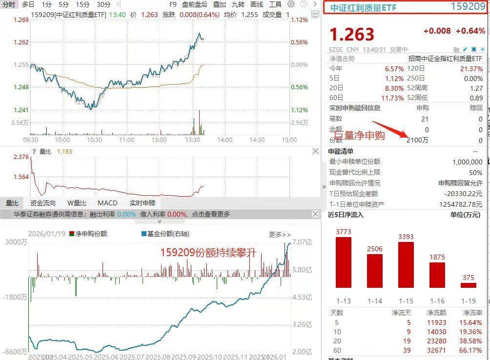 上市以来51次新高!中证红利质量ETF(159209)盘中再获超1300万增仓!
