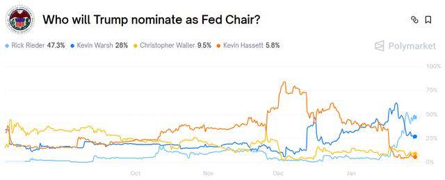 智通财经1月28日讯(编辑 潇湘)随着贝莱德首席投资官里克·里德尔有望接替鲍威尔的预期日益高涨, 部分期货和期权市场交易员正加码押注美联储将转向鸽派政策。 数据显示,自上周五以来,随着原本胜算几近于零的里德尔在博彩预测市场中一跃成为美联储下任主席 的头号热门人选,与有担保隔夜融资利率(SOFR)及美联储政策基准利率——联邦基金利率挂钩的利率 期货市场正涌入大量资金。 周一公布的联邦基金期货和SOFR期货未平仓合约数据显示,市场对新交易的兴趣日益浓厚,这些交易 有望从比当前定价更激进的降息路径中获益。显著的资金流包括7月-8月一个月期联邦基金期货价差以 及6月-12月六个月期SOFR 价差所出现的创纪录的成交量。 智通财经上周末曾介绍过,据熟悉白宫决策的人士透露,贝莱德高管里克·里德尔在华尔街的资历以及 对美联储改革持开放态度的立场,正增强了他获得这一联储最高职位的筹码。知情人士透露,这位贝莱 德高管不仅具备央行行长的形象气质,其提出的诸多美联储改革构想也吸引了特朗普总统的关注。 这些要求匿名讨论内部对话的人士表示,里德尔的另一优势在于他从未在美联储任职——这与另外几位 最终候选人不同——因此被视为不受该机构束 ...