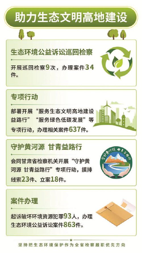 本报西宁1月28日电(全媒体记者马会平 王丽坤)"起诉破坏环境资源犯罪93人,办理生态环境公益诉 讼案件863件,联合甘肃省检察院开展'守护黄河源 甘青益路行'三年专项行动,以跨省检察协作守护'中 华水塔'!"1月28日,青海省检察院党组书记、检察长查庆九在青海省第十四届人民代表大会第四次会 议上作检察院工作报告,一系列生态保护硬核举措赢得代表们点赞。 2025年,青海省检察机关全面贯彻习近平法治思想和习近平总书记考察青海重要讲话精神,深入贯彻党 的二十大和二十届三中、四中全会精神,贯彻落实党中央决策部署和省委、最高检工作要求,立足"三 个最大"省情定位,持续把生态环境保护作为该省检察履职优先方向,在为大局服务、为人民司法、为 法治担当中展现新作为。青海省检察机关深化生态环境公益诉讼巡回检察,制定工作规则和办案指引, 开展巡回检察9次、办理案件34件,不断完善具有青海特点的跨区域、全流域生态环境公益诉讼办案模 式;部署"服务生态文明高地建设益路行""服务绿色低碳发展"等专项行动,办理相关案件637件;与甘 肃省检察机关在"守护黄河源 甘青益路行"专项行动中,联合开展首次沿黄巡回检察,摸排线索23件、 立案18 ...