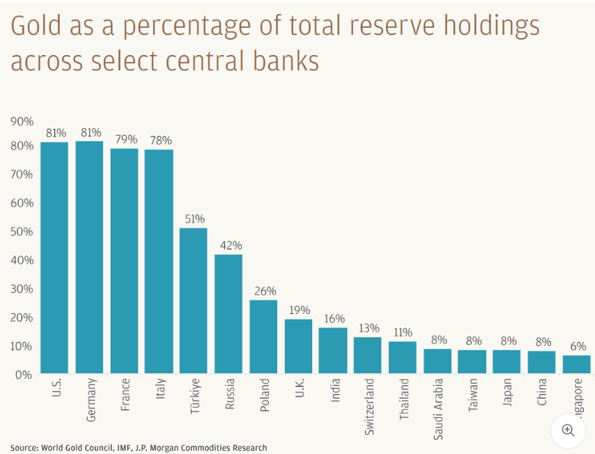 Core Viewpoint - Gold prices experienced a significant increase in 2025, with a peak rise of 55%, surpassing $4000 per ounce in October, driven by trade uncertainties, declining dollar demand, and central banks increasing gold reserves. The long-term outlook for gold prices remains positive, with expectations to reach $5000 per ounce by the end of 2026 and $5400 per ounce by the end of 2027 [1]. Price Forecast Overview - JPMorgan's quarterly gold price predictions for 2026 are as follows: - Q1: approximately $4400 per ounce - Q2: approximately $4655 per ounce - Q3: approximately $4860 per ounce - Q4: approximately $5055 per ounce [2]. Drivers of Gold Price Increase - The demand for gold is influenced by multiple factors, including a weaker dollar, declining U.S. interest rates, economic and geopolitical uncertainties, and its role as a hedge against currency depreciation and inflation. Gold is viewed as an "insurance asset" during market downturns or geopolitical conflicts [2]. - In Q3 2025, total gold demand from investors (ETFs, futures, bullion, and coins) and central banks reached approximately 980 tons, exceeding the average of the previous four quarters by over 50% [2]. Major Buyers of Gold in 2026 - The core of JPMorgan's price forecast relies on sustained strong demand from central banks and investors, with an expected average quarterly demand of about 585 tons [3]. Demand Structure for 2026 - The projected quarterly demand structure for 2026 is as follows: - Central Banks: approximately 190 tons - Bullion and Coins: approximately 330 tons - ETFs and Futures: approximately 275 tons for the year, primarily concentrated in the early part of the year [5]. Central Bank Gold Purchases - Central banks are expected to continue their structural trend of increasing gold purchases, with an estimated total of 755 tons in 2026, significantly above the long-term average of 400-500 tons prior to 2022 [5]. Investor Demand for Gold - Investors are also increasing their allocation to gold, with expectations of net inflows into gold ETFs of approximately 250 tons and demand for bullion and coins exceeding 1200 tons in 2026 [9]. Gold's Share in Asset Management - As of September 2025, gold held by investors through ETFs, physical gold, and COMEX futures accounted for about 2.8% of the total assets under management (AUM) in global stocks, bonds (excluding central bank reserves), and alternative assets. This share has increased by about 1 percentage point over the past two years, with potential to rise to 4%-5% in the coming years [10][12]. Upward Price Risks - The upward price risks for gold remain dominant, as long as central banks and investors continue diversifying their assets. A mere 0.5% shift of overseas U.S. assets into gold could push prices to $6000 per ounce, given the relatively inelastic supply [12].