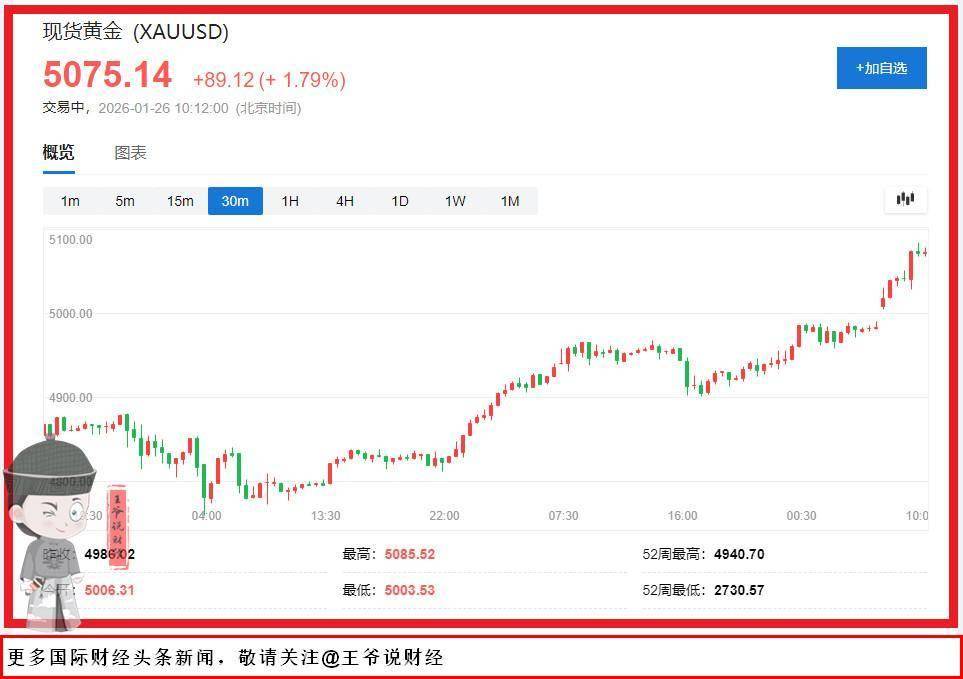 最高5085美元:国际金价首次突破5000美元!为何黄金突然失控狂飙?