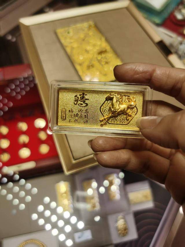 马年春节叠加情人节,黄金消费市场迎来年度热潮。读特&深圳商报·读创记者走访深业上城、卓悦中 心等核心商圈的品牌金店发现,马年主题贺岁金饰密集上市,并以空前营销力度抢占市场。兼具文化底 蕴的主题特色与黄金保值属性,对标多元化消费群体,成为节日黄金消费市场"香饽饽"。 "马上暴富"等,炫起马主题风 2月10日,读特&深圳商报·读创记者走访深业上城、卓悦中心等各大品牌金店发现,各大金店在金条设 计上"卷"出新高度,"马到成功"、"马上乾坤"等生肖贺岁金条,以高精度浮雕工艺刻画骏马奔腾的姿 态,将足金999.9材质既具保值潜力,又具美观收藏的属性充分发挥,成为驱动消费的核心动力。同时 推出的主题金饰涵盖吊坠、手链、金条、手串等全品类,精准把握马年生肖寓意与当代消费审 美,"卡"颜又保值。 卓悦中心,一品牌金店马主题金条 老凤祥"马上暴富"主题手串上的转运珠沿用了亮眼的爱马仕橙非常吸睛。"搭配马背上的'富'字,时尚且 贵气。"店员和记者说道。 周六福柜面店员则拿起挂有"钱币"和"富"字样金片的钱马奔腾系列挂坠和手链,展示给记者看。此外, 六福珠宝还特别推出了"唐宫夜宴"联名的珐琅工艺唐彩墩墩马系列金链,在设计上兼顾了文 ...