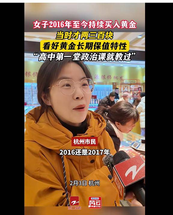 女子2016年至今持续买入黄金,当时才两三百块,因看好黄金长期保值特性