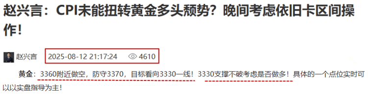 昨日黄金操作回顾! 昨晚CPI数据公布之后,黄金冲高回落,而兴言晚上也是早早说了昨天的一个思路,给出了3360空,3330 多,而昨晚行情也是跌至3330涨至3360,涨至3360以后又跌至3340一线,只要你昨天按照兴言思路操作, 直接就是多空双重收获,全网策略思路都可查! | 8月11日 | 黄金 | રે | 9:10 | 3381 | 3372 | -10 | 4 | | --- | --- | --- | --- | --- | --- | --- | --- | | 8月11日 | 黄金 | ਲੇ | 15:03 | 3360 | 3363 | 2 | 否 | | 8月11日 | 黄金 | રે | 20:09 | 3350 | 3360 | o | 否 | | 8月12日 | 黄金 | ਦੇ | 22:16 | 3332 | 3355 | 22 | を | | 8月12日 | 黄金 | 交 | 23:28 | 3358 | 3346 | 11 | 在 | 有时候总在想,为什么分析建议那么多,赚钱的人却那么少,兴言老师曾经归结于遇人不淑,可是这个说 辞在今天看来越来越站不住脚,俗话说吃一堑长一智, ...