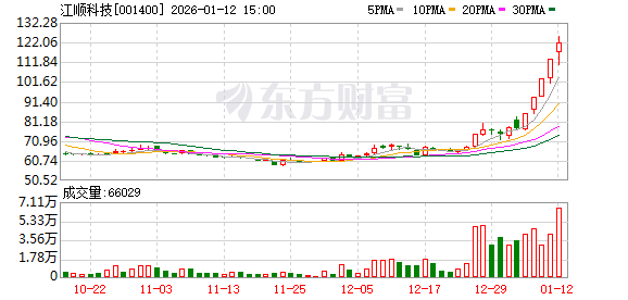 江顺科技今日上涨7.14%,全天换手率44.02%,成交额7.83亿元,振幅13.61%。龙虎榜数据显示,机构 净买入5159.08万元,营业部席位合计净卖出732.09万元。 江顺科技1月12日交易公开信息 | 买/ | 会员营业部名称 | 买入金额(万 | 卖出金额(万 | | --- | --- | --- | --- | | 卖 | | 元) | 元) | | 买一 | 机构专用 | 5159.08 | 0.00 | | 买二 | 东方财富证券股份有限公司拉萨东环路第二证券营业部 | 1386.26 | 477.48 | | 买三 | 中国中金财富证券有限公司北京建国门外大街证券营业 | 1313.51 | 1.23 | | | 部 | | | | 买四 | 中信证券股份有限公司北京北三环中路证券营业部 | 1053.78 | 2.35 | | 买五 | 国泰海通证券股份有限公司深圳分公司华富路证券营业 | 1042.13 | 36.96 | | | 部 | | | | 卖一 | 国金证券股份有限公司上海静安区南京西路证券营业部 | 257.00 | 1367.53 | | 卖二 | 东方财富证券股份 ...