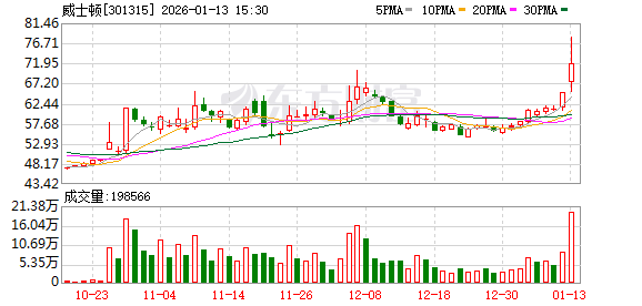 威士顿今日上涨10.39%,全天换手率53.67%,成交额14.76亿元,振幅20.08%。龙虎榜数据显示,营业 部席位合计净买入2.01亿元。 深交所公开信息显示,当日该股因日换手率达53.67%上榜,营业部席位合计净买入2.01亿元。 证券时报·数据宝统计显示,上榜的前五大买卖营业部合计成交3.38亿元,其中,买入成交额为2.70亿 元,卖出成交额为6839.13万元,合计净买入2.01亿元。 具体来看,今日上榜营业部中,第一大买入营业部为国泰海通证券股份有限公司东莞总部一路证券营业 部,买入金额为7900.92万元,第一大卖出营业部为天风证券股份有限公司杭州教工路证券营业部,卖 出金额为1771.97万元。 近半年该股累计上榜龙虎榜5次,上榜次日股价平均跌0.47%,上榜后5日平均跌6.53%。 资金流向方面,今日该股主力资金净流入1.57亿元,其中,特大单净流入2.50亿元,大单资金净流出 9303.57万元。近5日主力资金净流入1.48亿元。 威士顿1月13日交易公开信息 | 买/ 卖 | 会员营业部名称 | 买入金额(万元) | 卖出金额(万元) | | --- | --- | --- | --- ...