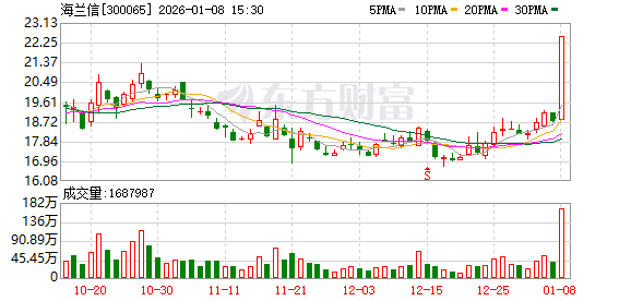 海兰信今日涨停,全天换手率25.70%,成交额35.65亿元,振幅19.87%。龙虎榜数据显示,机构净买入 1.35亿元,深股通净买入5020.98万元,营业部席位合计净买入3.04亿元。 深交所公开信息显示,当日该股因日收盘价涨幅达20.00%上榜,机构专用席位净买入1.35亿元,深股通 净买入5020.98万元。 证券时报·数据宝统计显示,上榜的前五大买卖营业部合计成交10.17亿元,其中,买入成交额为7.53亿 元,卖出成交额为2.64亿元,合计净买入4.89亿元。 具体来看,今日上榜的营业部中,共有5家机构专用席位现身,即买四、买五、卖二、卖三、卖四、卖 五,合计买入金额2.46亿元,卖出金额1.11亿元,合计净买入1.35亿元,深股通为第一大买入营业部及 第一大卖出营业部,买入金额为2.03亿元,卖出金额为1.53亿元,合计净买入5020.98万元。 资金流向方面,今日该股主力资金净流入8.87亿元,其中,特大单净流入11.36亿元,大单资金净流出 2.49亿元。近5日主力资金净流入8.87亿元。 融资融券数据显示,该股最新(1月7日)两融余额为7.72亿元,其中,融资余额为7.71亿元,融券余额 ...
