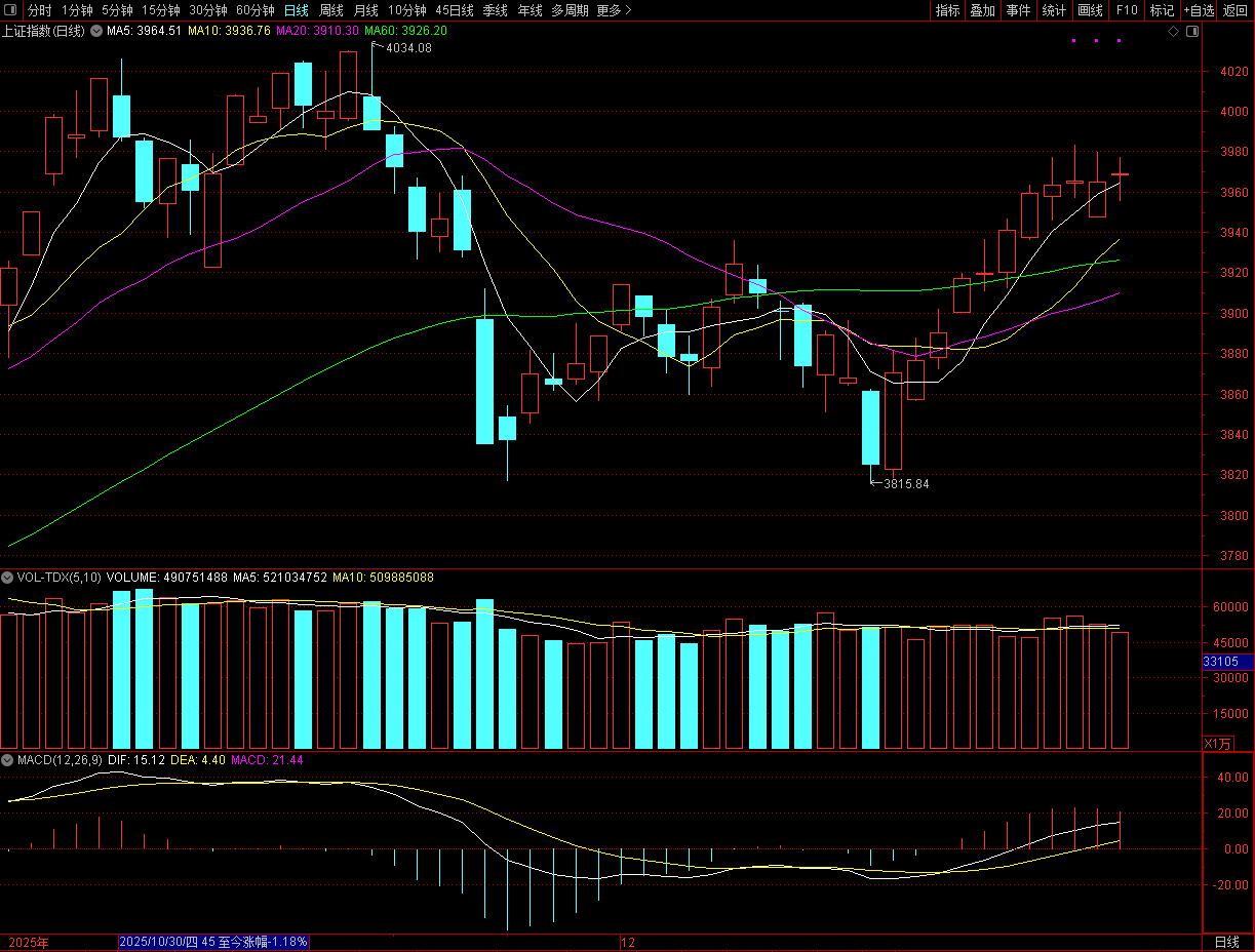 2025年最后一天,贵金属又出现大波动了,白银昨天晚上的反弹幅度很明显,一度上涨了10%,几乎将此前大阴线的大部分都吞吃了,本来大家以为短期内 走稳了,结果今天开盘低开低走,盘中的最大跌幅达到了近10%,也就是说昨天晚上好不容易反弹上去的成果又跌没了。 其实这里可以做一个简单的判断,白银在70美元之前走势还算温和,没有出现单日过大的涨幅,也没有呈现出多空的过度分歧,就是从70美元之上开始单日 暴涨和大跌,说明市场对70美元之上显得很纠结,多空双方之间的争夺也很激烈,此时当一个看客比较好,如果70美元最终守不住的话,下一步多头来说就 较为不利了,也会对整个有色金属会形成短期偏空的影响。 尽管市场看起来非常不错,但是我们要重视一个现象,沪指的收红主要是受到了两股力量的加持,一个是券商早盘的拉升,但是后来券商全面走弱了,这个 时候银行就充当了拉升指数的核心力量,才使得最终收盘维持了一种强势。 仔细看看沪指的走势图,已经连续4天在3980点之下震荡了,而且连续三天的高点在下移,这实际上为节后的行情埋下了伏笔,到底是直接突破4000点呢, 还是就此暂时打住,展开震荡行情,如果这个时候看看上证指数的年线,阳线的实体非常明 ...