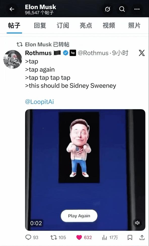 文|周鑫雨 编辑|苏建勋 如果没有亲自上手,真的很难形容Loopit的产品定位。 它像是内容"活过来"的抖音。通过Feed流喂给用户的内容,不只是视频、图片、音乐,而是可以通过点击、划动、自拍、语音、摇一摇等玩法,进行互动 的内容。 由于产品交互太新,在和Loopit创始人陈炜鹏交流之前,他极力嘱咐我们:"不能只看demo,一定要亲自体验!" 此前,陈炜鹏是搜狗和百川智能的技术负责人。2025年6月,他创立了AI应用公司"涌跃智能",产品方向为AI内容社区。《智能涌现》独家获悉,涌跃智 能过去30天内完成了两轮融资。据测算,最新估值较1个月前提升了6倍。 2026年2月10日,旗下产品Loopit正式上线,一名海外用户将使用视频,发布到了X,随即得到了埃隆·马斯克的评论转发。 △马斯克转发Loopit。图源:马斯克X账号 的确,在一众工具型、服务垂直场景的AI产品中,这款名为Loopit的平台型AI社区应用,形态和玩法,都令人眼前一亮。 △打开Loopit,就能看到单列Feed流中,有用户发布的各种互动内容,比如用手指滑动掉落的柚子,让它们在卡皮巴拉头上保持平衡。图源:作者试用 在内容生产的另一端,与UGC平 ...