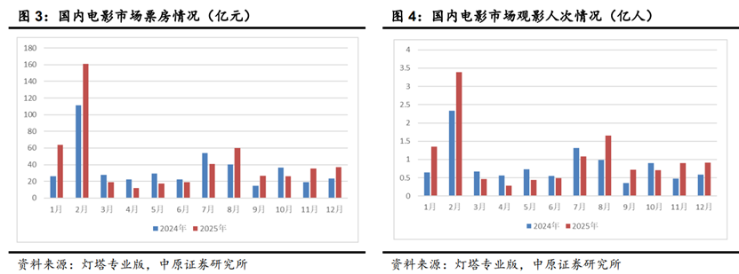 Group 1 - The core viewpoint of the article highlights the launch of the "Film+" consumption pilot program in 16 cities, aiming to integrate film consumption with market activities, alongside the initiation of the "2026 Film Economy Promotion Year" with a budget of at least 1.2 billion yuan for subsidies to encourage movie attendance [1] - The domestic film market is expected to recover in 2025, with projected box office revenue reaching 51.832 billion yuan, representing a year-on-year growth of 21.95%, and total audience attendance of 1.238 billion, an increase of 22.57% [1] - The extended 9-day Spring Festival holiday in 2026 is anticipated to boost viewing demand, with improved content supply likely to elevate box office performance during this peak period [1] Group 2 - The media industry is experiencing a favorable policy environment, with increased regulatory certainty and supportive measures aimed at promoting healthy industry development, which is expected to enhance content supply and meet the growing demand for quality content [1] - The performance of the Spring Festival period is crucial for the film and television sector's financial results and market valuations, as the industry faces demand growth limitations [3] - Film companies are diversifying their business models beyond core operations by exploring new commercial avenues such as IP collaborations, trendy merchandise, offline entertainment, and AI-generated content to enhance competitiveness and stabilize performance [3]