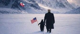 白宫发布特朗普与企鹅走向格陵兰岛AI图片